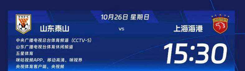 2025-10-29足球直播,欧洲杯直播,体育直播,球客直播,雷速体育,篮球直播,风驰直播,NBA直播,英超直播,足球比分,足球赛事,意甲,欧冠,世界杯,世界杯直播,村超,贵州村超,波胆,角球,串球,大小球北京时间10月26日下午15:30,中超联赛第28轮将上演一场硬仗,山东泰山将在主场对阵上海海港。本场比赛将在央视体育频道CCTV-5、山东广播电视台体育休闲频道以及五星体育进行现场直播,喜爱足球的球迷们也可以通过咪咕视频APP、移动高清、咪视界、央视体育客户端、央视频等网络平台观看比赛。