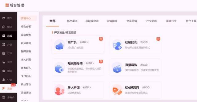 直播的核心是转化,配套营销功能直接决定带货效果。乔拓云构建了“直播+营销”闭环,直播间内可直接挂载拼团、秒杀、优惠券等10+营销插件,某鲜果商家通过“直播秒杀+拼团”组合,单场直播订单量突破800单;支持推广员分销功能,主播可发展粉丝成为推广员,分享直播间获得佣金,某户外用品商家通过该功能带动直播流量提升60%;同时配备实时数据分析插件,实时统计观看人数、转化率、客单价等核心数据,助力商家即时调整直播策略。