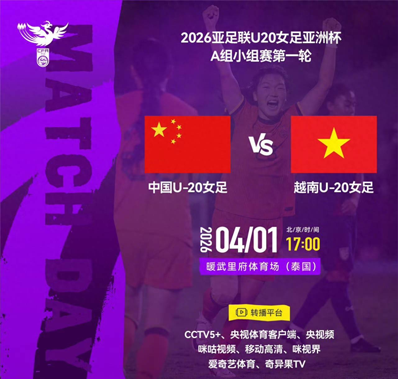 2026-04-06足球直播,欧洲杯直播,体育直播,球客直播,雷速体育,篮球直播,风驰直播,NBA直播,英超直播,足球比分,足球赛事,意甲,欧冠,世界杯,世界杯直播,村超,贵州村超,波胆,角球,串球,大小球北京时间4月1日下午17点,2026年泰国U20女足亚洲杯即将展开首场比赛的对决,中国U20女足将迎战同组的越南U20女足。在上届U20女足亚洲杯的小组赛中,中国队曾以6-1的比分击败对手。