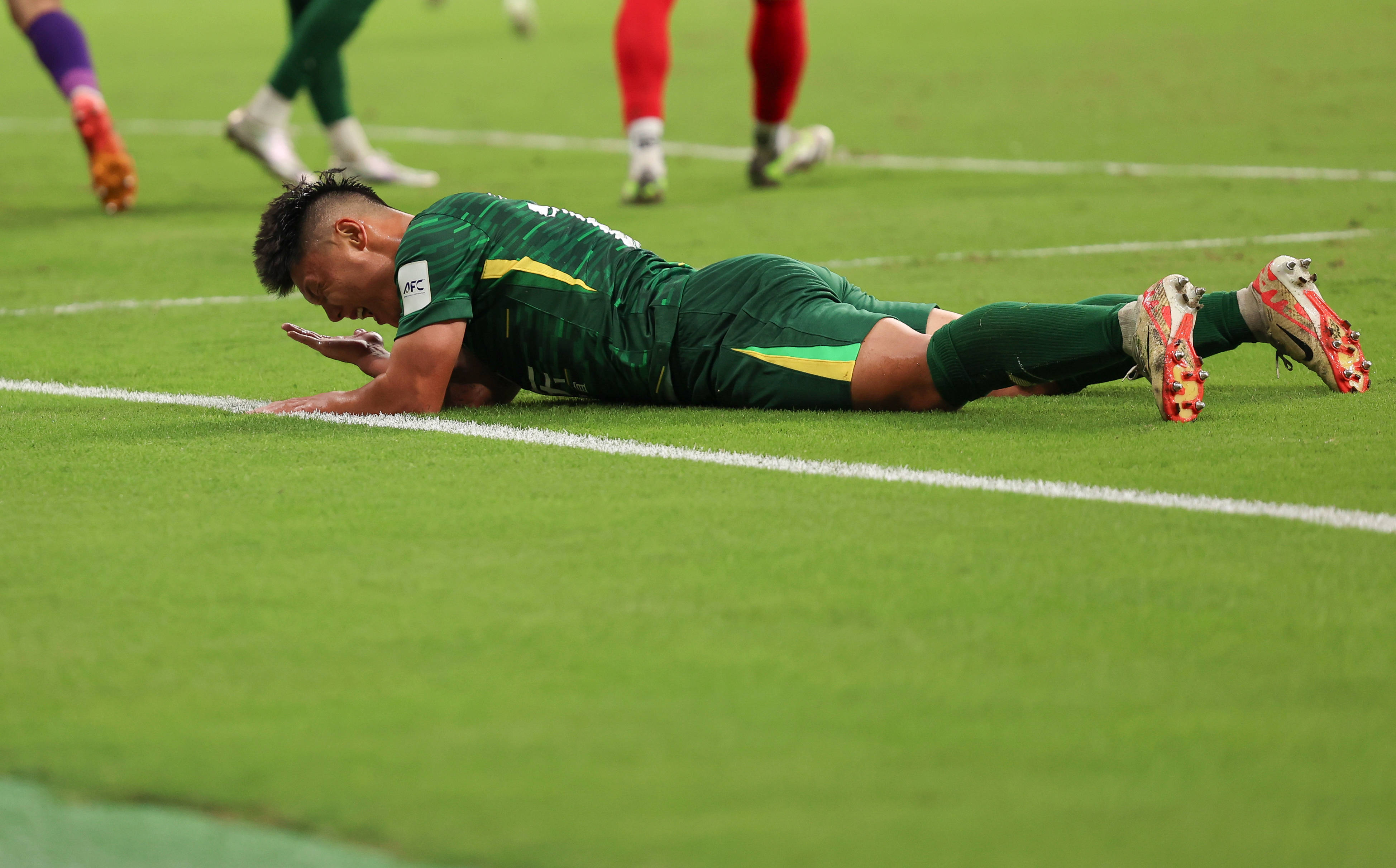9月18日,北京国安队球员方昊在比赛中错失得分机会后。 新华社记者 胡星宇 摄