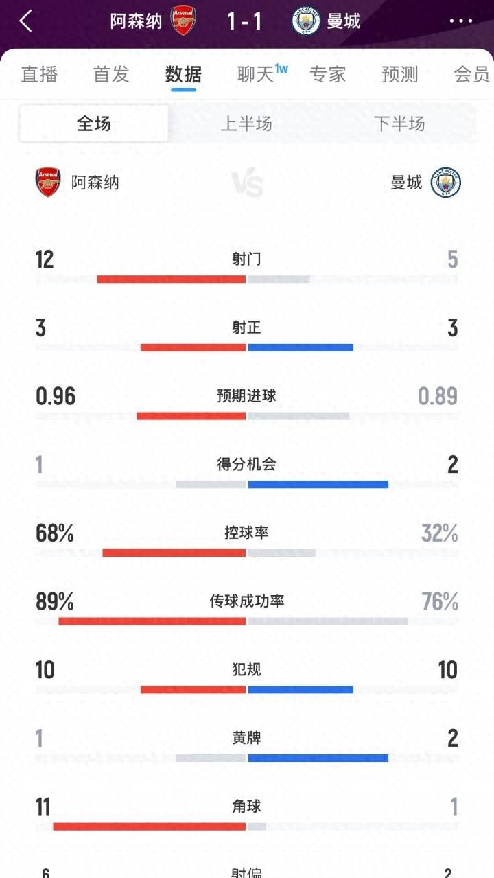 阿森纳对阵曼城控球压倒却没赢!这场“数据大战”你怎么看?足球直播- NBA直播- 世界杯专业赛事超清Live