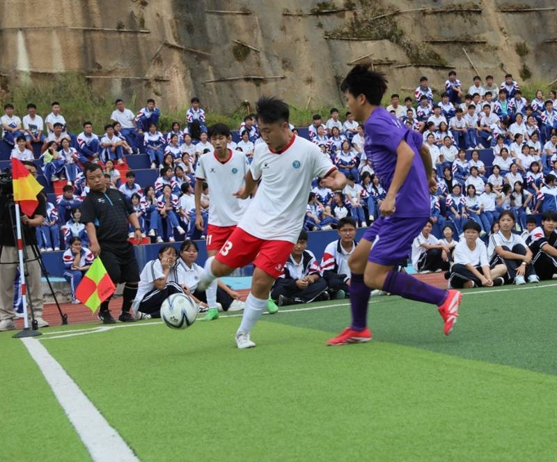 当天,随着裁判一声哨响,双方交锋攻防转换快速,球员们在球场上来回奔跑、拼抢、射门,每一个动作都展现了他们顽强拼搏、团结协作的精神风貌,他们用汗水和努力诠释了足球运动的魅力。观众席上,同学们的加油声、呐喊声此起彼伏,为赛场上的健儿们注入了无穷的力量,上半场比赛结束,沿河第二高级中学代表队保持了领先优势。