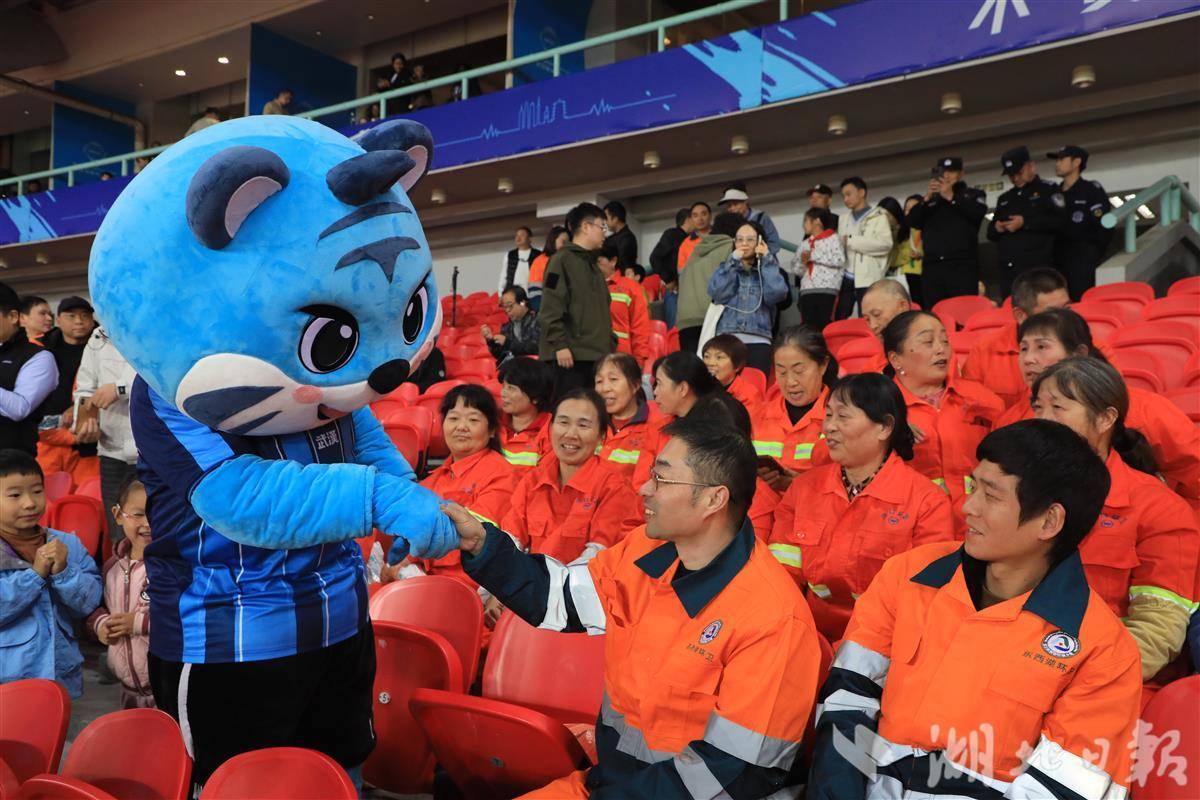 2025-10-25足球直播,欧洲杯直播,体育直播,球客直播,雷速体育,篮球直播,风驰直播,NBA直播,英超直播,足球比分,足球赛事,意甲,欧冠,世界杯,世界杯直播,村超,贵州村超,波胆,角球,串球,大小球“今晚,有一群特殊嘉宾来到比赛现场,让我们用最热烈的欢呼声,向他们致敬!”10月24日晚,武汉体育中心,2025赛季中超联赛第28轮武汉三镇主场迎战深圳新鹏城的比赛现场看台上,一片明亮的“橙色方阵”格外引人注目——他们是来自武昌区、东西湖区、武汉经开区的200名环卫工人代表。