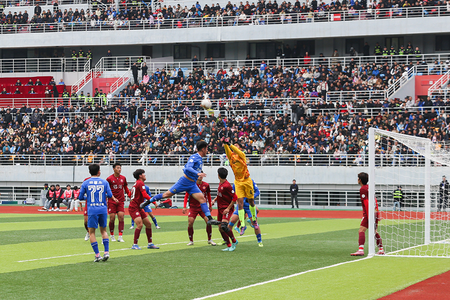 看台上的故事同样精彩。现场为聊城传奇队加油助威的球迷中,有一群一年级的小朋友,他们身穿蓝色助威服、吹着喇叭、齐声喊着响亮的加油口号。“今天是我第一次在现场观看足球比赛,非常激动。聊城队加油!”小球迷李世荣说。