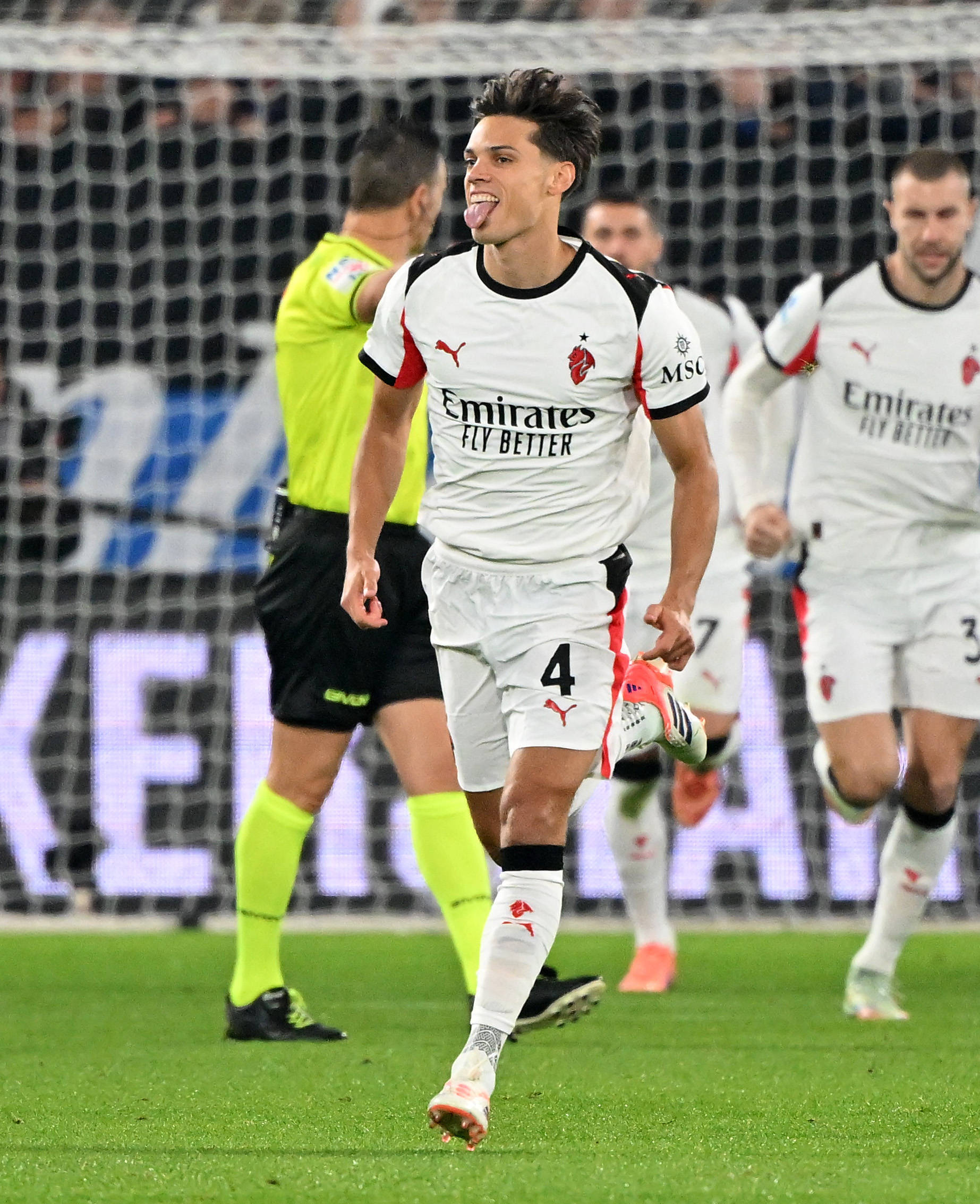 10月28日,AC米兰队球员里奇庆祝进球。 新华社发(阿尔贝托·林格利亚摄)