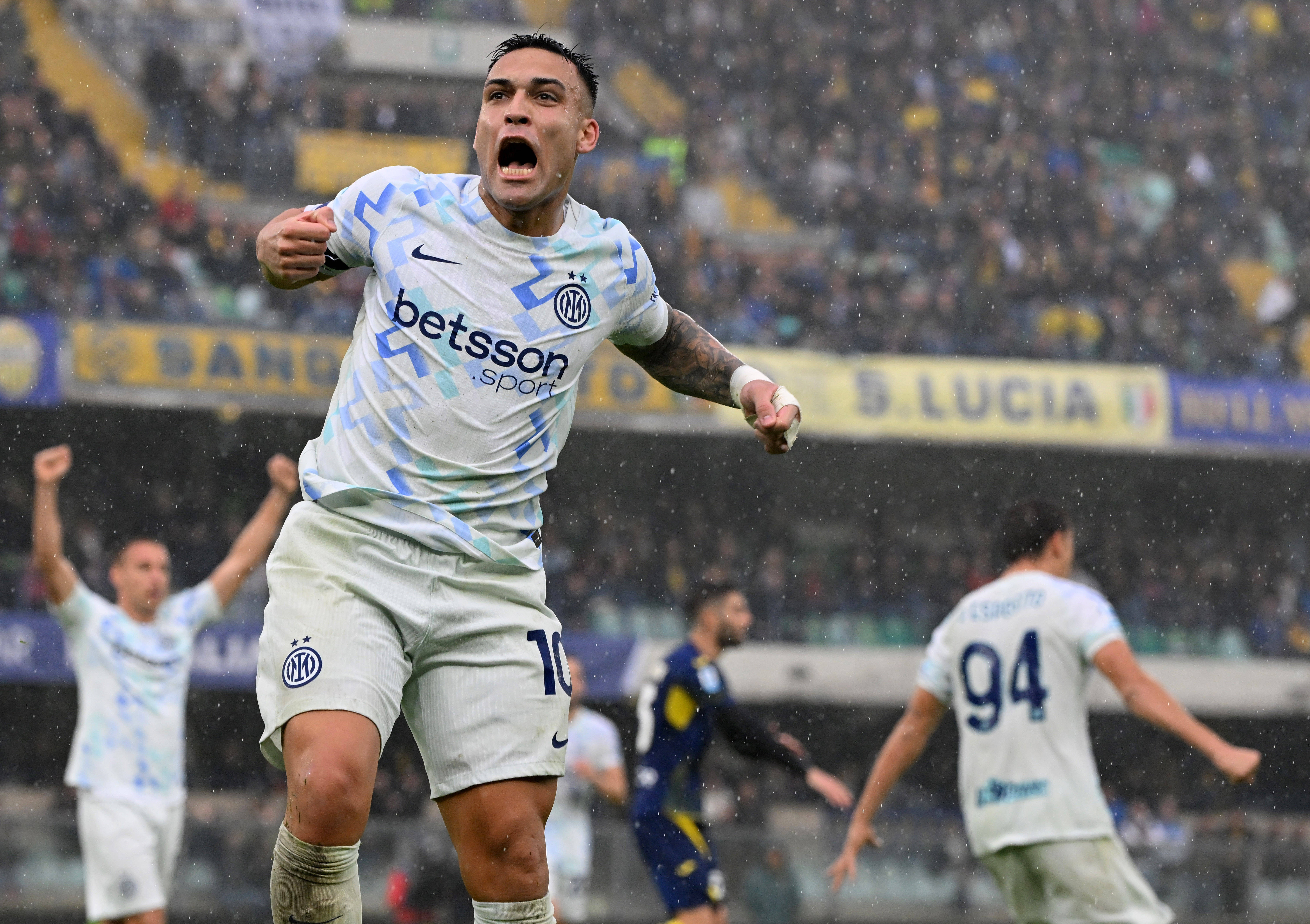 11月2日,国际米兰队球员劳塔罗·马丁内斯在维罗纳队球员打入乌龙球后庆祝。 新华社发(迭戈摄)