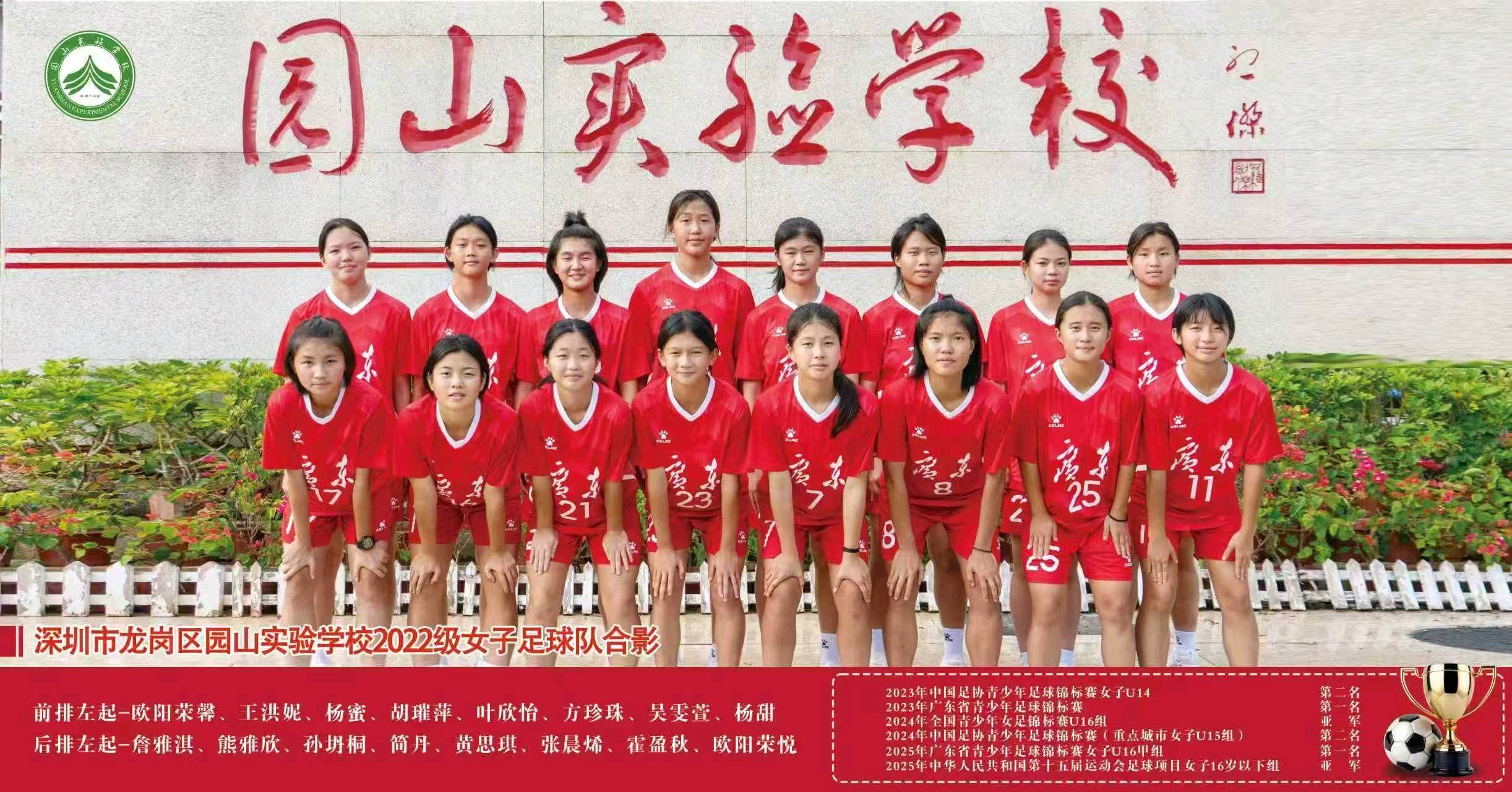 2025年以来,园山实验学校女足屡创佳绩:以球队队员为核心的中国U16女足,荣获法国“蒙太古杯”国际足球邀请赛亚军;以该校为主要班底组建的广东U16女足,斩获第十五届全运会亚军;球队自身还摘得广东省青少年足球锦标赛女子U16甲组冠军。此外,球队还向中国U17女足输送了叶欣怡、方珍珠、欧阳荣馨等多名优秀队员,成为校园足球人才培养的典范。