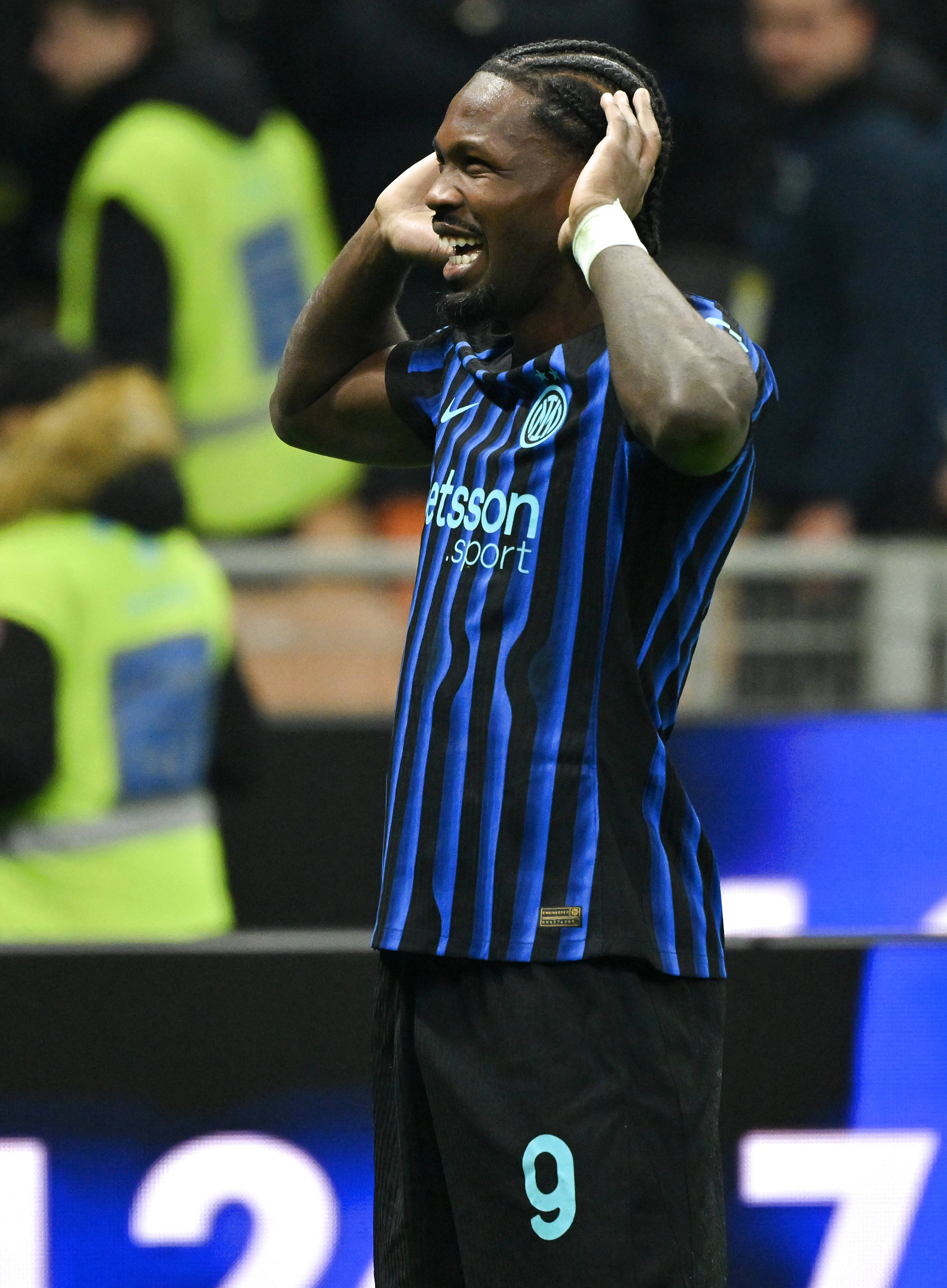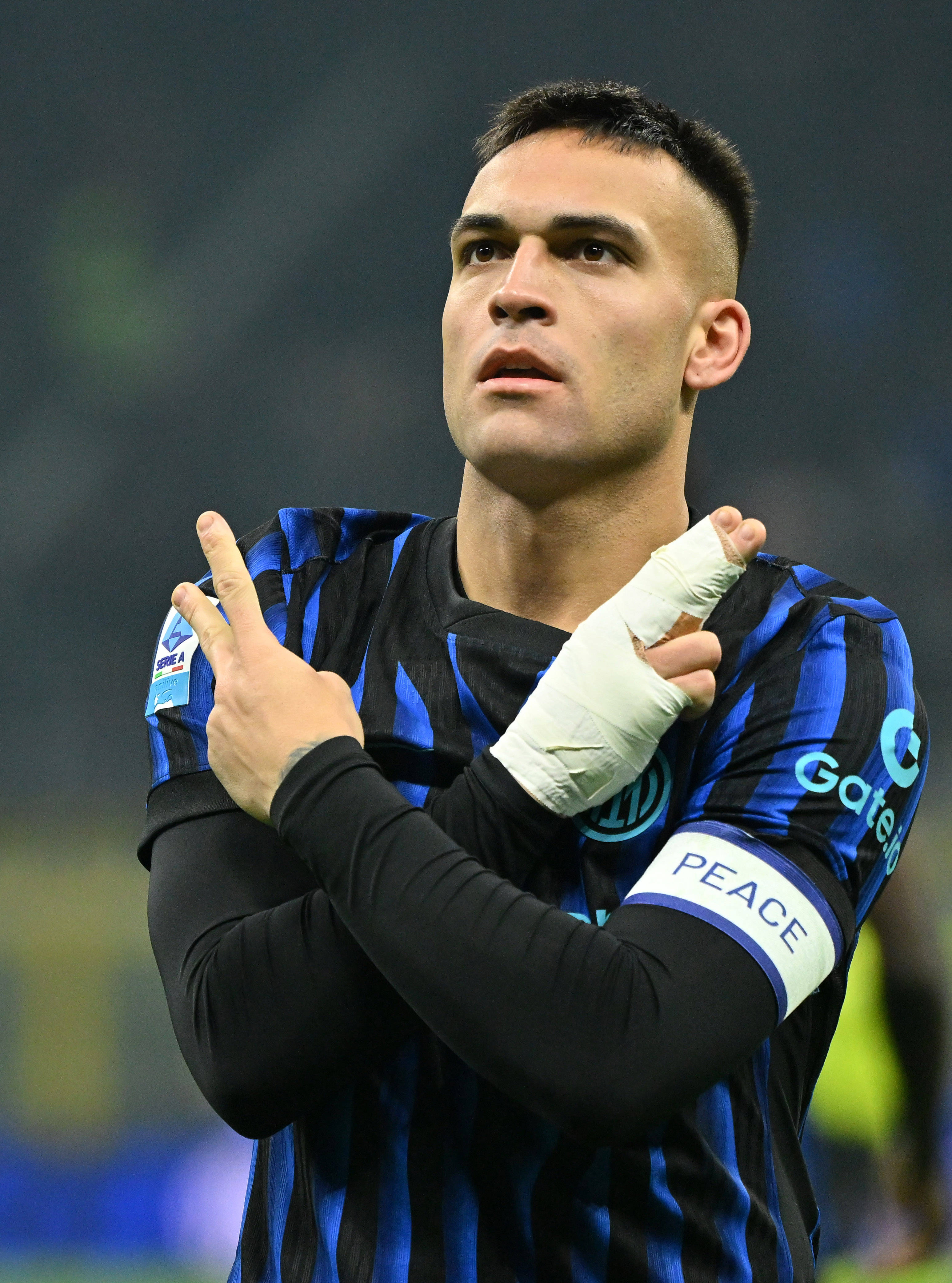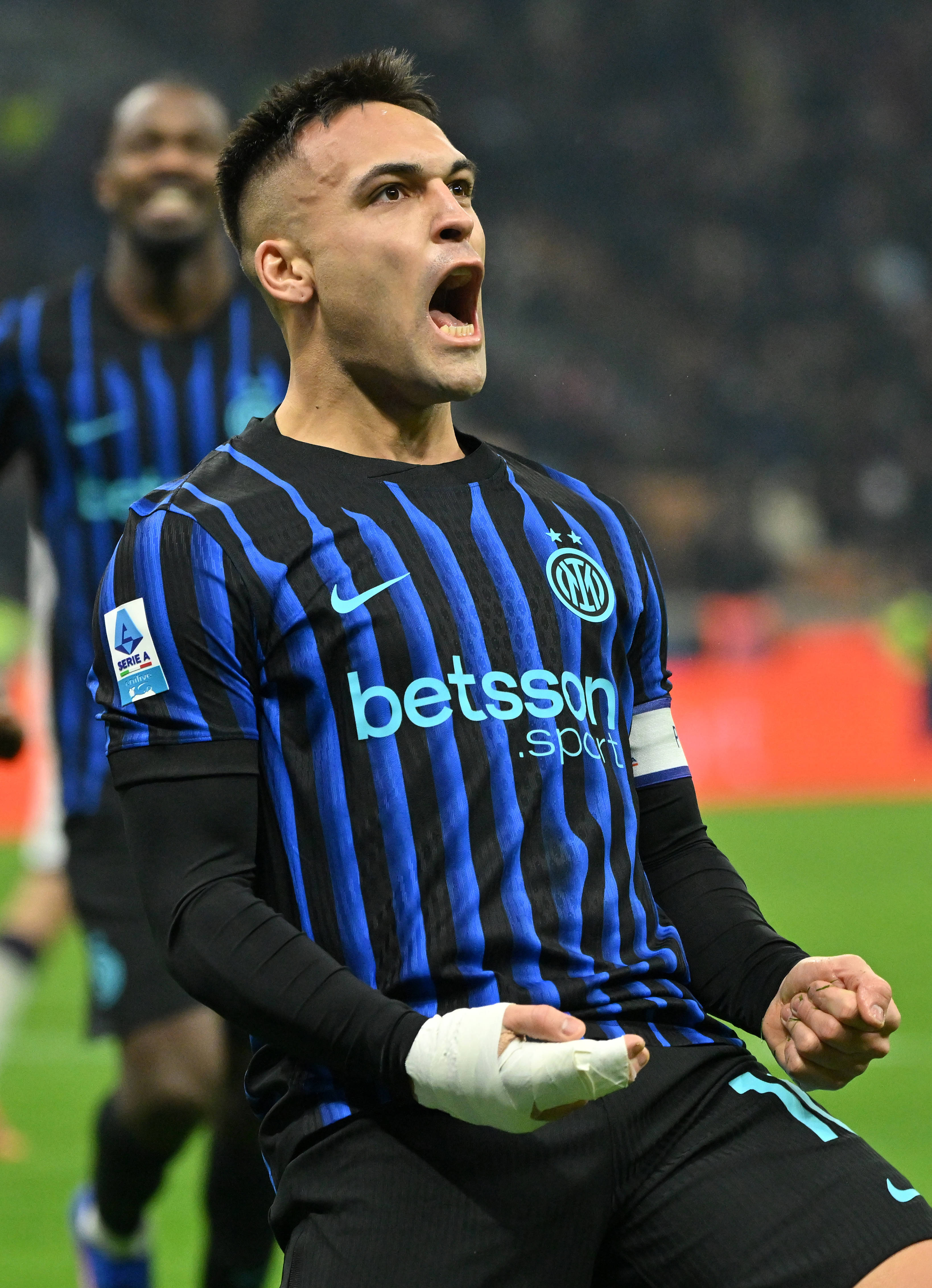 1月4日,国际米兰队球员劳塔罗·马丁内斯庆祝进球。 新华社发(阿尔贝托·林格利亚摄)