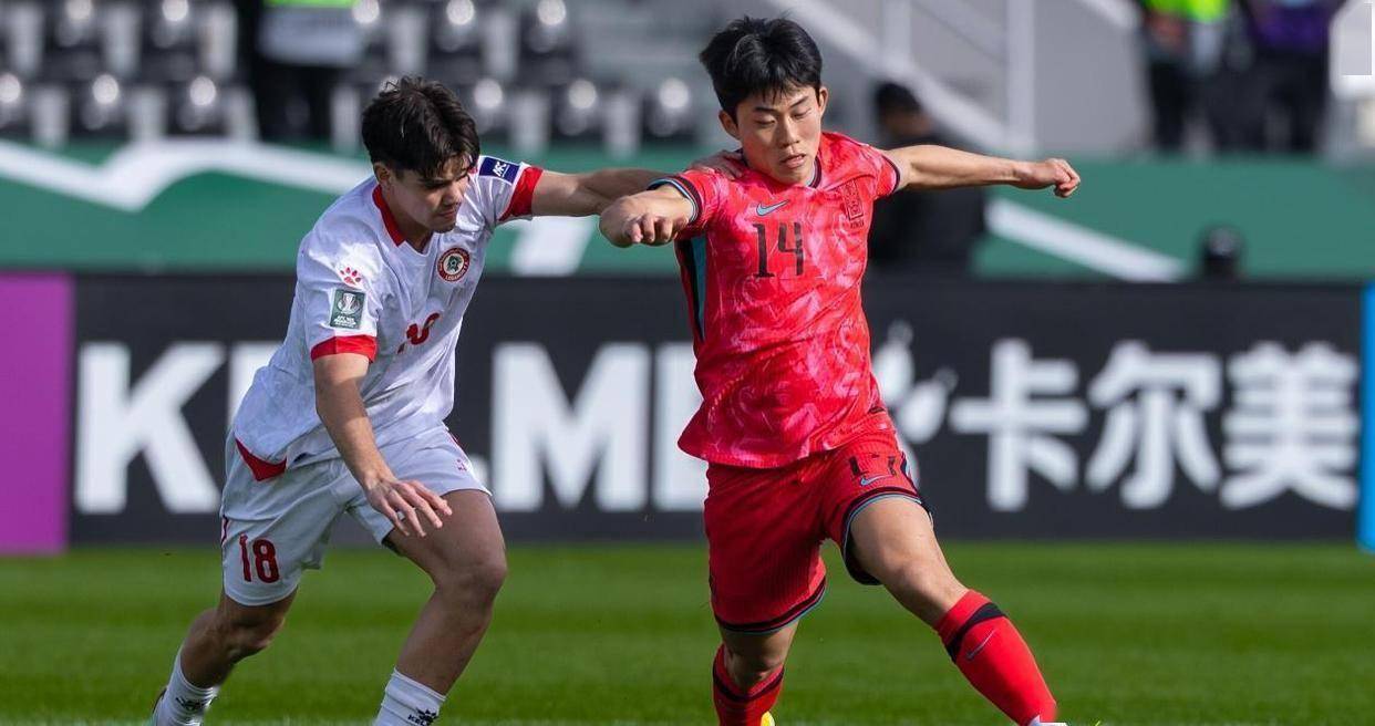 卫冕冠军韩国队在C组的征程则显得坎坷许多。 首战与伊朗队0比0互交白卷,全场射门寥寥无几,核心球员姜尚润的因伤退场更让球队雪上加霜。 次战对阵黎巴嫩,韩国队两度落后两度扳平,最终连进两球完成4比2的逆转。 这场胜利让韩国队积4分升至小组第二,但在这个拥有伊朗、乌兹别克斯坦的“死亡之组”中,每一分都来之不易。