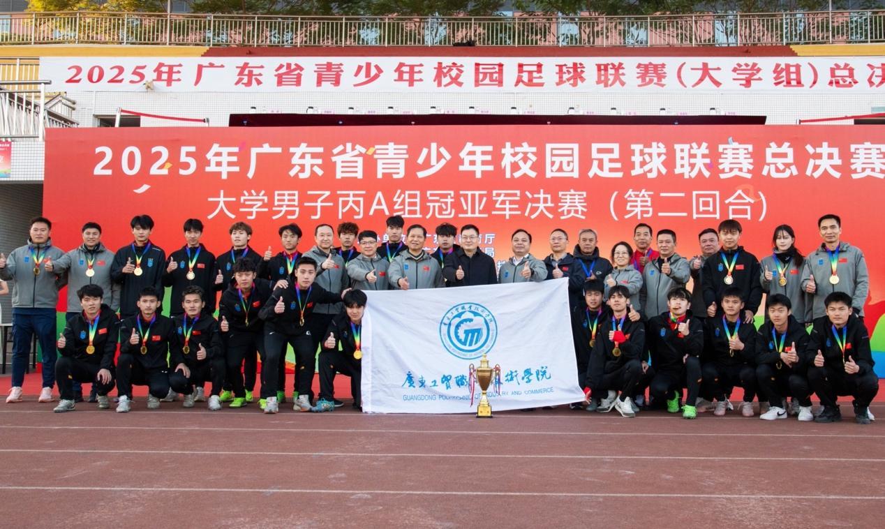 本场比赛由广东工贸对阵广东机电职业技术学院。比赛中,广东工贸足球队以8:0的战绩,荣膺2025年广东省青少年校园足球联赛大学男子丙A组冠军。