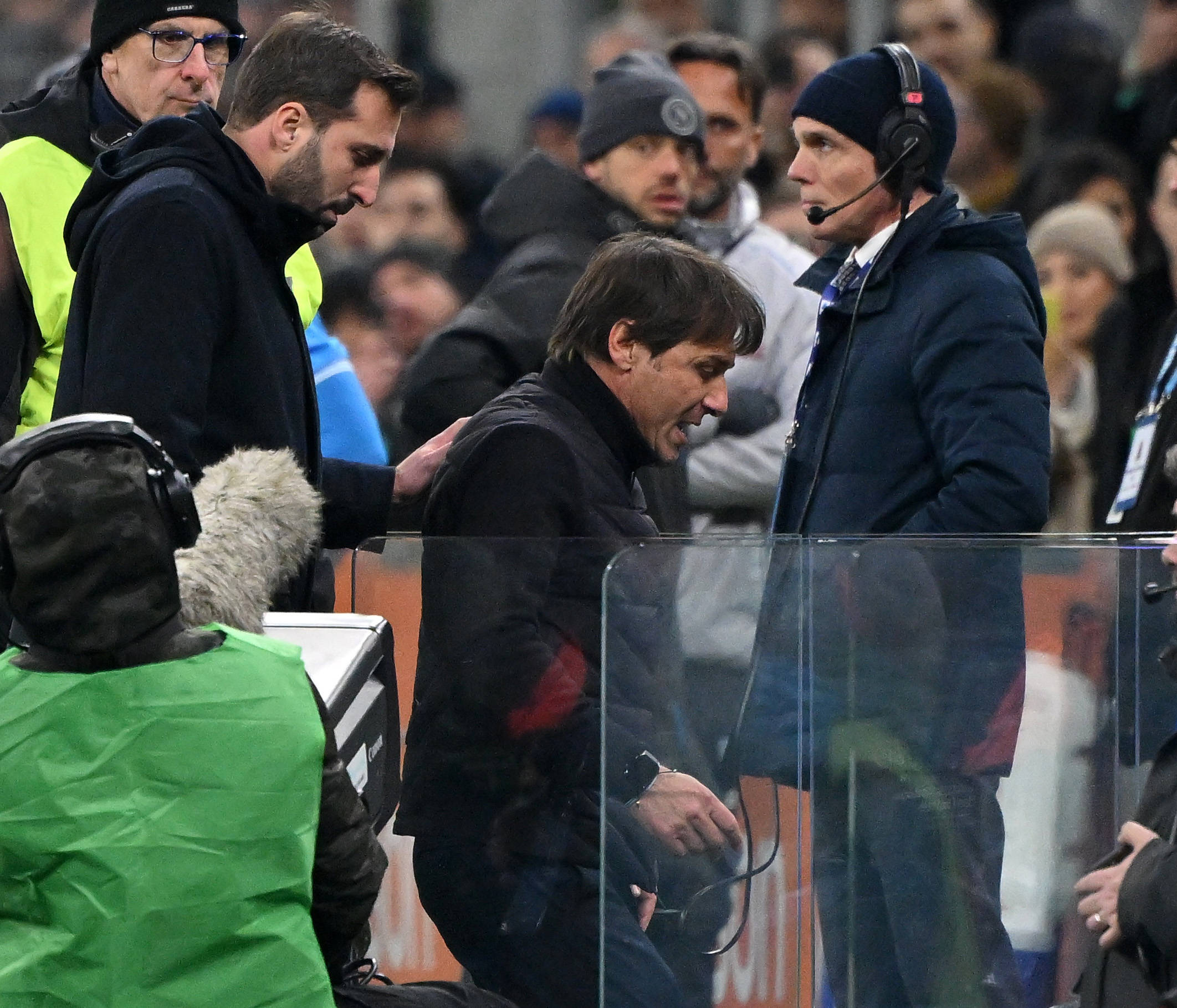 1月11日,那不勒斯队主教练孔蒂被红牌罚出场外。 新华社发(阿尔贝托·林格利亚摄)