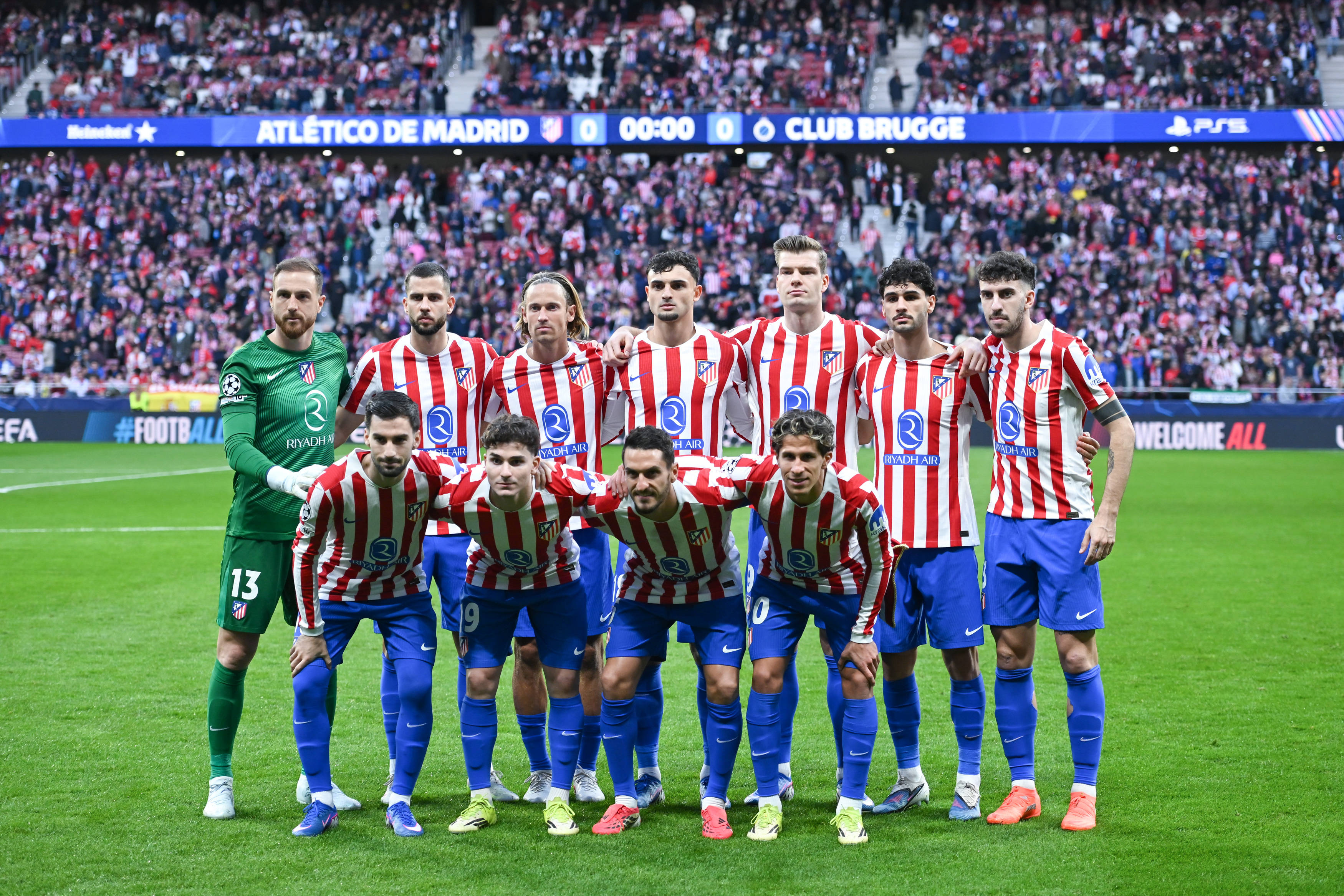 2月24日,马德里竞技队首发球员在比赛前合影。 新华社发(古斯塔沃·巴连特摄)