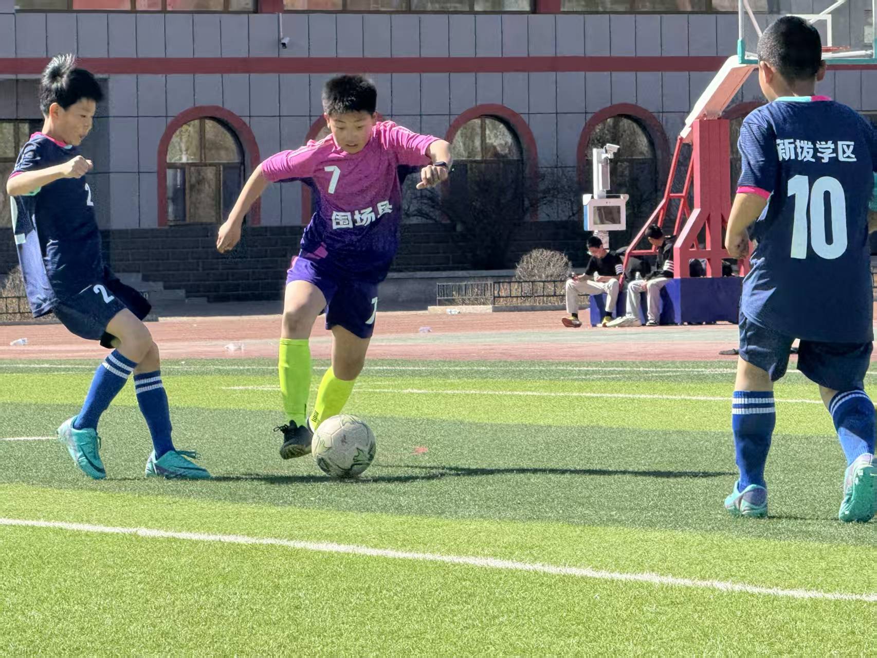 现场来自围场全县四大赛区的优胜队伍齐聚赛场,赛事设小学、初中、高中、男女6个组别同步开赛,共有10所学校、14支代表队、200余名师生参加。追风少年们在绿茵场上奔跑、传球、射门,每一次拼抢都展现着不服输的韧劲,每一粒进球都点燃全场热情,用汗水书写着属于围场少年的足球热爱。